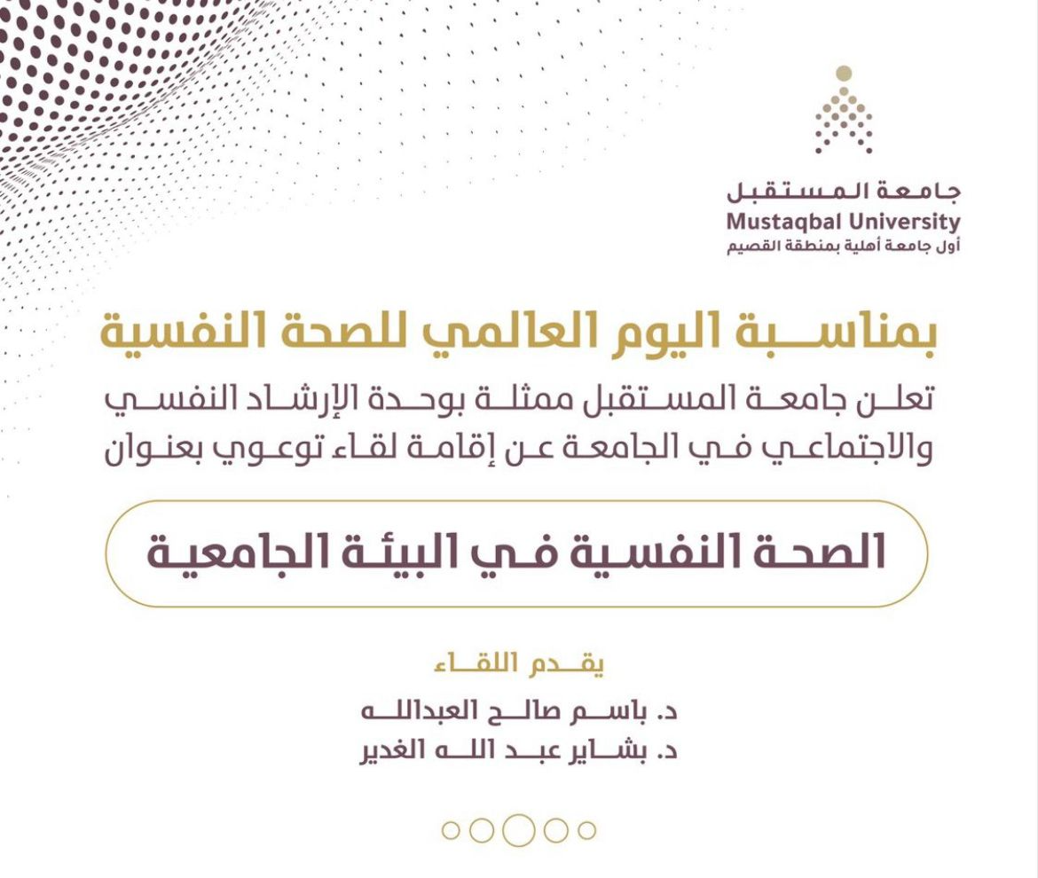 تزامنًا مع شهر التوعية بسرطان الثدي، نظّمت جامعة المستقبل ممثّلة بكلية الهندسة وعلوم الحاسب بالتعاون مع إدارة شؤون الطلاب والخريجين ومشاركة مركز الأمير فيصل بن بندر للأورام وجمعية زهرة، فعالية توعوية ..