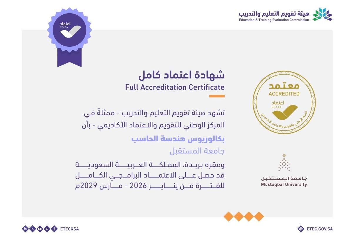 برنامج بكالوريوس هندسة الحاسب بكلية الهندسة وعلوم الحاسب بجامعة المستقبل يحصل على الاعتماد البرامجي الكامل