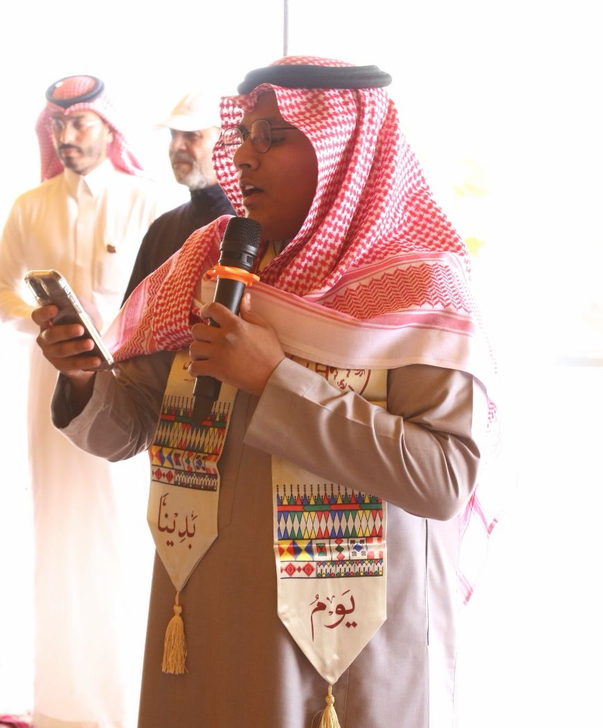 وتخلّل الحفل برنامج متنوع بدأ بتلاوة عطرة من القرآن الكريم، أعقبها إلقاء عدد من القصائد الوطنية وكلمات عبّرت عن مشاعر الطلبة، استحضرت مسيرة الوطن الممتدة منذ تأسيس الدولة السعودية الأولى على يد الإمام محمد بن سعود – رحمه الله – عام 1139هـ، وصولًا إلى ما تنعم به المملكة اليوم من نهضة شاملة في ظل قيادة خادم الحرمين الشريفين الملك سلمان بن عبدالعزيز آل سعود، وسمو ولي عهده الأمين الأمير محمد بن سلمان بن عبدالعزيز – حفظهما الله.